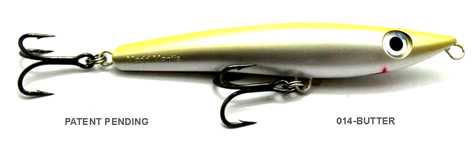 - The downward-turned line tie under the chin is the key to the bait’s swim, as it lets the bait roll free on the retrieve, giving the bait its seductive wiggle.
